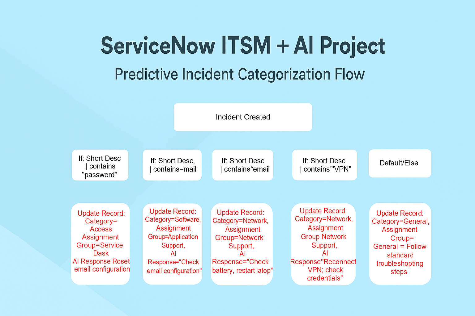 By designing enterprise-grade ITSM logic, the solution can significantly reduce manual interventions and improve automated decision routing.